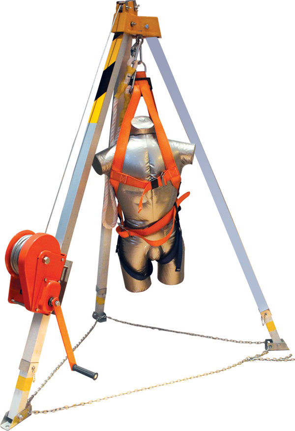 三脚架适用于高处、悬崖及密闭空间作业,常见密闭空间有各类储罐、容器、反应釜、铁路罐车、舰艇船舱、密闭运输通道、地下管道(如电缆沟)、烟道、隧道、粮食筒仓、坑槽、竖井、纸浆池、污水池、下水道、地窖、化粪池、污水井、污水渠等,多数为非常规、非连续作业的场所。广泛应用于消防、市政、救援机构。